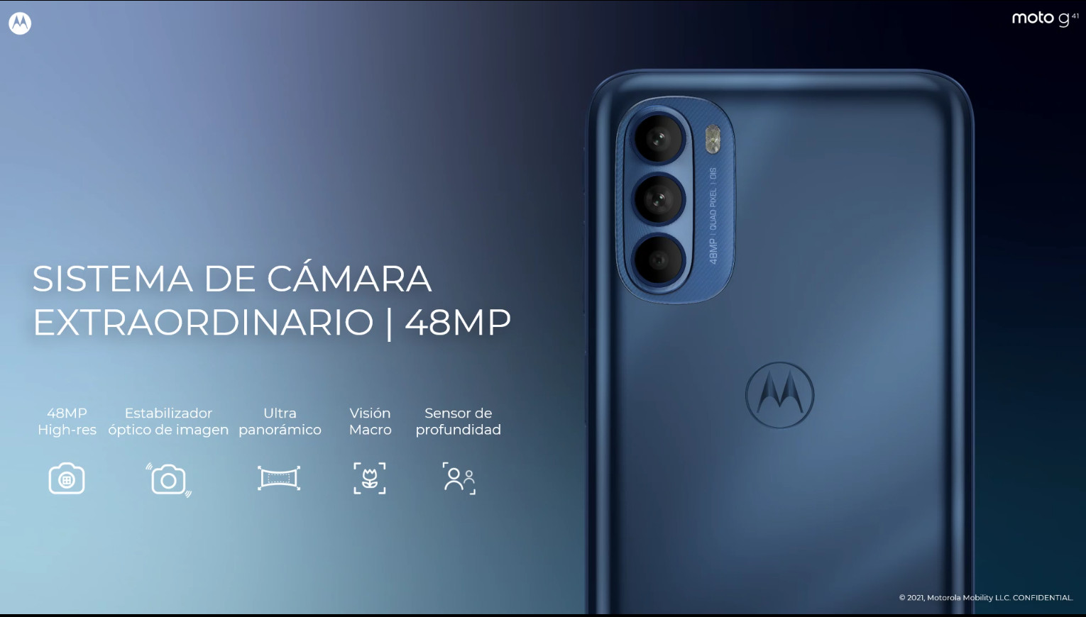 El moto g41 ofrece un sensor principal de 48 MP con tecnología Quad Pixel11 que te permite capturar fotos increíbles de día, de noche y en cualquier momento. La estabilización óptica por hardware (OIS) compensa automáticamente las imágenes y los videos borrosos debido al movimiento no deseado de la cámara, incluso cuando la exposición tarda más tiempo. Por ejemplo, en condiciones de poca luz, la claridad y los detalles brillan. El moto g41 viene con la misma pantalla OLED FHD+ de 6,4 pulgadas y TurboPower™ 30 que el moto g71 5G. Además, se sentirá que el teléfono responde instantáneamente a cada toque y deslizamiento gracias a su extraordinario procesador octa-core, 4GB de RAM y 128 GB de almacenamiento interno.