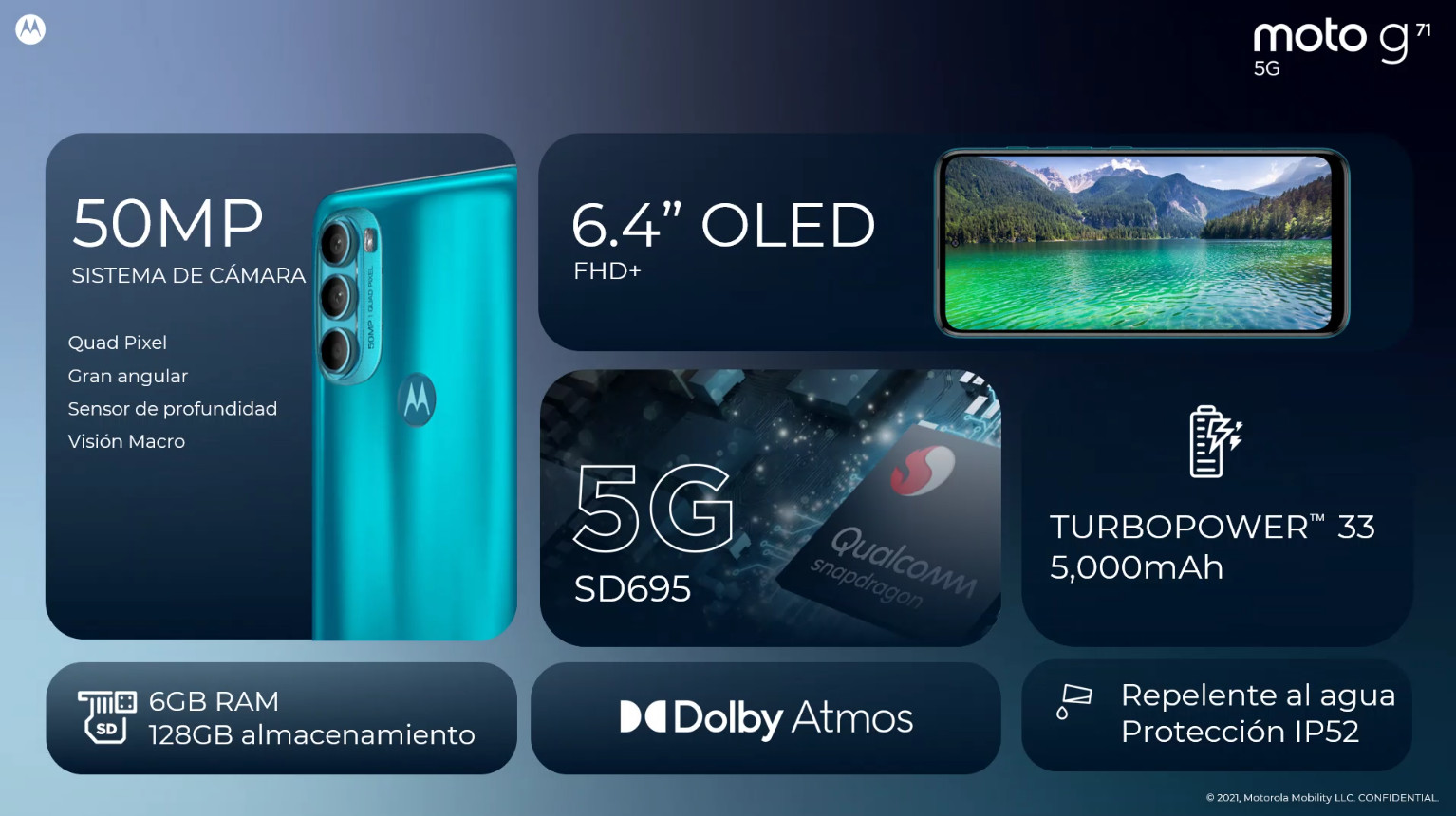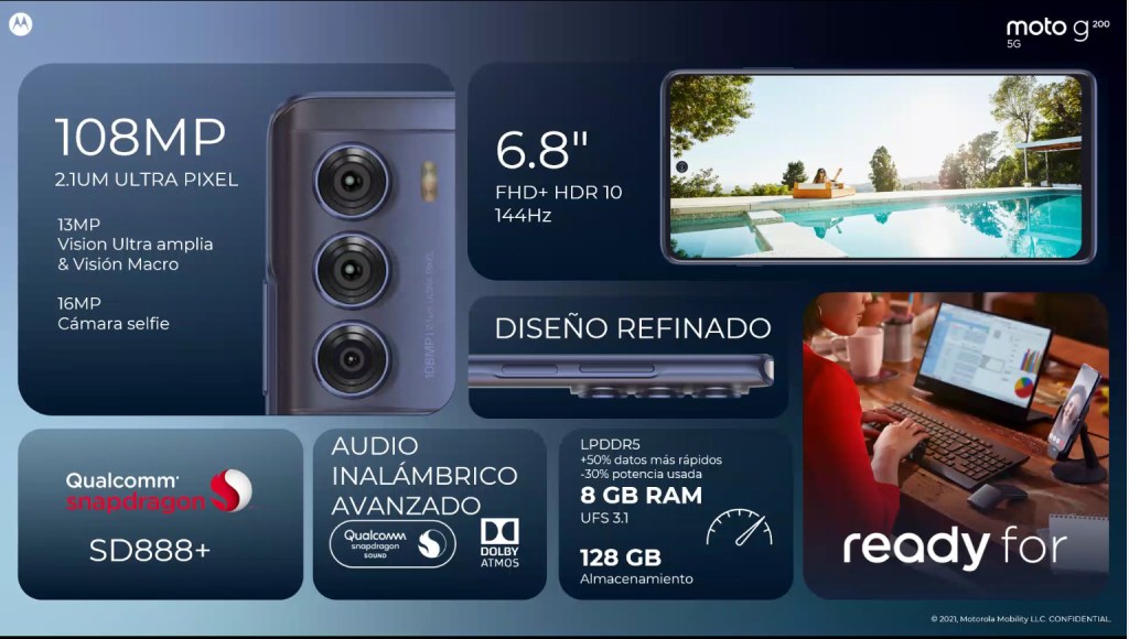 Además del moto g200 5G, Motorola también presentó: moto g71 5G, moto g51 5G, moto g41 y moto g31. Cada uno de estos dispositivos ofrece una serie de funciones para que todos los consumidores puedan encontrar un teléfono que se adapte a sus necesidades, desde pantallas inmersivas y sistemas de cámara increíbles, hasta una duración de la batería y un rendimiento asombrosos. Y también un sonido más rico y resonante en los auriculares gracias a la tecnología Dolby Atmos, presente en todos estos nuevos equipos.