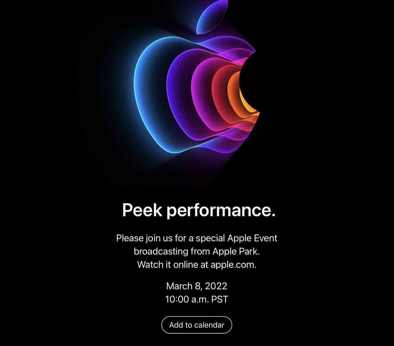 Después de semanas de rumores, Apple anuncio oficialmente su evento de hardware del 8 de marzo. No hay mucho que decir al respecto más allá del término «Peek performance», lo que tal vez indica que veremos nuevas Mac en el evento.
