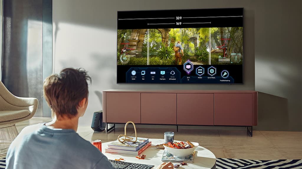 El modelo Neo QLED es la opción ideal para juegos y para incorporar a un set gamer. Su Super Ultrawide Game View brinda el área de visualización necesaria para maximizar la experiencia de juego y el Game Bar permite hacer ajustes en tiempo real en relación a aspecto y configuración. Además, incluye FreeSync Premium Pro™, una tecnología que reduce la fragmentación de imágenes proporcionando una fluidez de juego al máximo rendimiento y Motion Xcelerator Turbo+ que mejora el movimiento hasta una resolución en 4K. Para una experiencia gamer completa, la pantalla cuenta con una tasa de refresco de 120Hz y conexión HDMI 2.1.