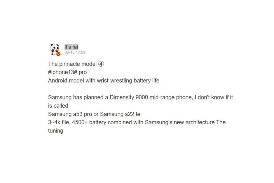 Según la cuenta its Fat, quien tiene por lo general muy buena información, confirma que Samsung está trabajando en un teléfono que funcionará con el chip Dimensity 9000 de MediaTek. Por supuesto todos sabemos que es el chip más poderoso de la compañía taiwanesa y tiene especificaciones comparables a Qualcomm Snapdragon 8 Gen 1 y Samsung Exynos 2200 que alimentan diferentes variantes de la serie Galaxy S22.