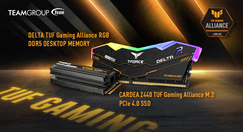 Las memorias DDR5 T-FORCE DELTA TUF Gaming Alliance RGB son las primeras memorias DDR5 certificadas por la Alianza TUF Gaming tras rigurosas pruebas en sus placas madre de última generación. Su diseño combina una estética inspirada en el combate sigiloso con los elementos característicos de la línea TUF Gaming de Asus, junto con iluminación RGB configurable a través de ASUS Aura Sync, permitiendo a los jugadores configurar su iluminación y sincronizarla con el resto de sus componentes. Este kit estará disponible en una versión Dual-Channel de 2x16GB con velocidad de 5200MHz.