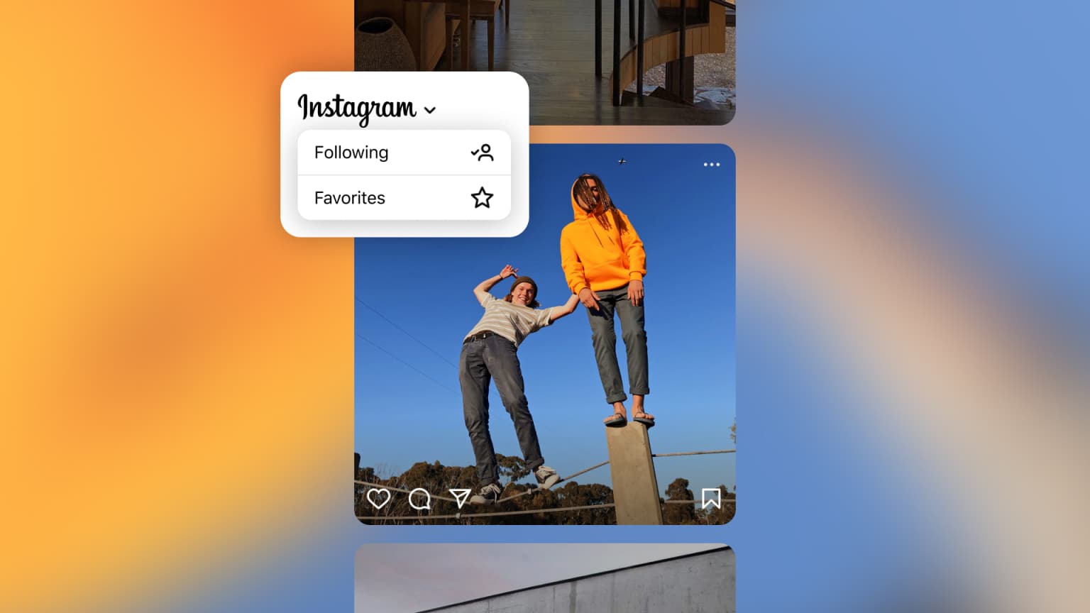 La nueva versión de la aplicación tiene dos fuentes opcionales, a las que puede acceder tocando el logotipo de Instagram en la parte superior. El primero se llama Siguiendo, y este es el feed cronológico de cada publicación de cada cuenta que seguimos, mientras que el otro se llama Favoritos.
