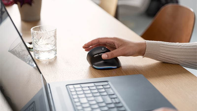 El Trust Bayo cuenta con un diseño ergonómico vertical que te ayudará a reducir la tensión muscular en el brazo y la muñeca durante esas extensas sesiones de trabajo al favorecer una posición natural y así lograr que los músculos estén mas relajados. Además, para ofrecer la máxima libertad de movimiento, el mouse Bayo cuenta con conexión inalámbrica con un alcance de 10 metros y una batería recargable para ayudar al medioambiente al evitar el desecho de pilas. Finalmente, posee un sensor óptico con velocidad ajustable entre 800, 1200, 1600, 2000 y 2400 DPI, y dos botones para pulgar que te ayudarán a trabajar de manera más eficiente.
