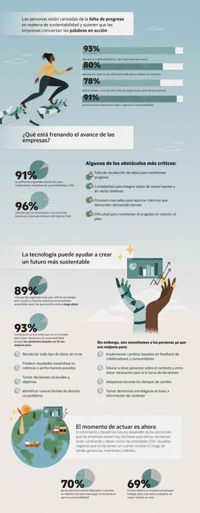 Las personas en todo el mundo exigen más avances en materia de sustentabilidad y esfuerzos sociales, y esperan que las empresas den el paso adelante, según un nuevo estudio de Oracle y Pamela Rucker, asesora en sistemas de información e instructora de Harvard Professional Development. El estudio «No Planet B» encuestó a más de 11.000 consumidores y líderes empresariales en 15 países y descubrió que las personas están cansadas de la falta de progreso que la sociedad está logrando hacia la sostenibilidad y las iniciativas sociales, quieren que las empresas conviertan las palabras en acción y creen que la tecnología puede ayudar a las empresas a tener éxito donde las personas han fracasado (Fuente Oracle Latam).