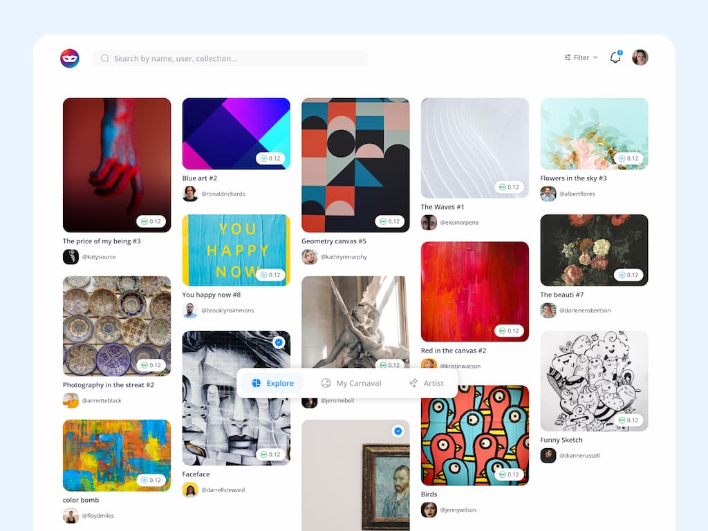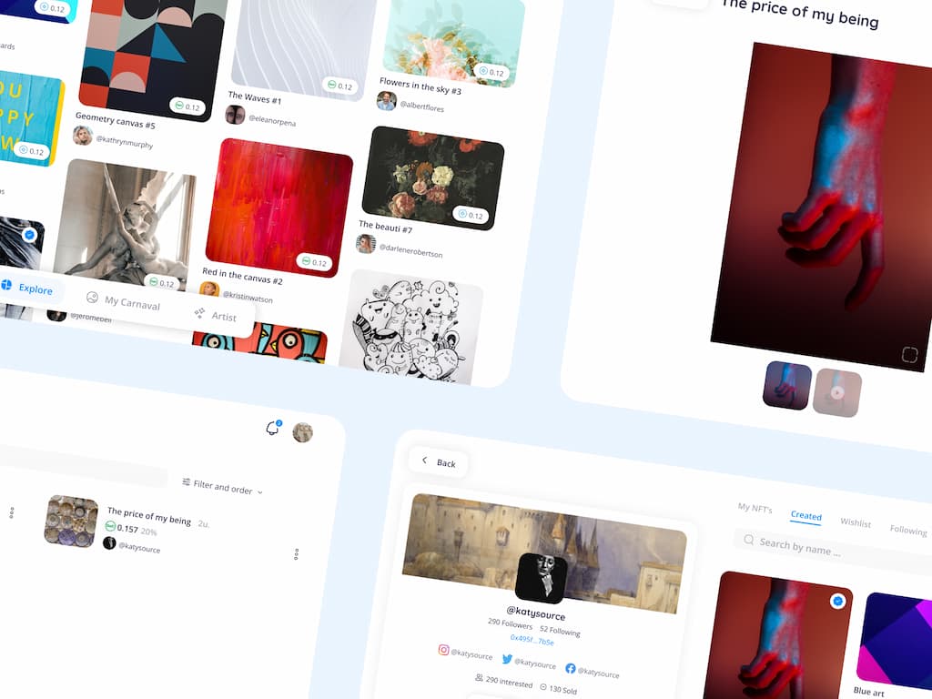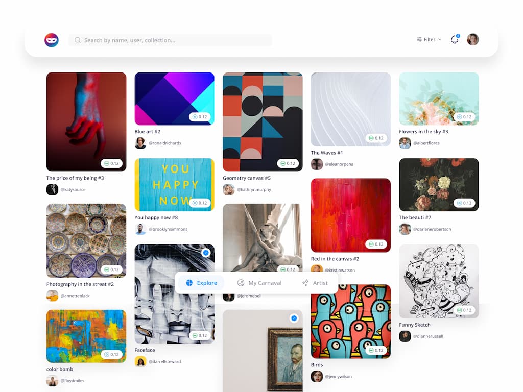 En este contexto, y bajo la premisa de incrementar la visibilidad de los artistas emergentes latinoamericanos y popularizar sus obras digitales, nace Carnaval, el primer marketplace de NFTs en Iberoamérica montado sobre la red de Bitcoin. Carnaval.art está orientado al criptoarte e incluye a todo su ecosistema: el negocio, los artistas, los coleccionistas y los usuarios de plataformas del rubro. Está conformada por una extensa colección de arte digital curado de manera exquisita cuyos autores son artistas que cuentan con el aval o sponsoreo de museos, galerías y personas de influencia en el mundo del arte, quienes también pasan a ser actores dentro de la plataforma..