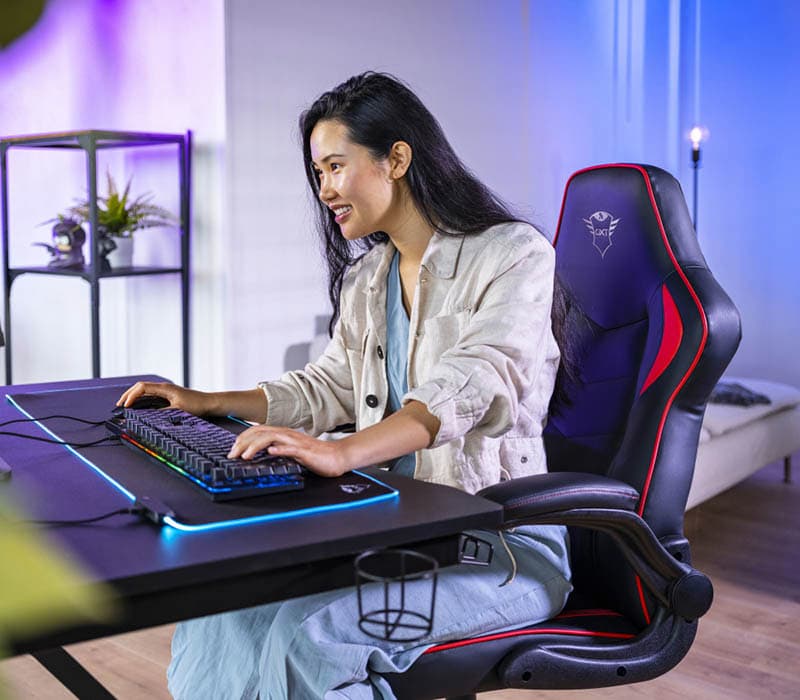 La primera de estas sillas es la GXT 701 Ryon, una compacta silla centrada en la ergonomía que nos permitirá mantener una buena postura y estar totalmente cómodos aún si debemos estar por horas frente a la PC mientras trabajamos, o cuando simplemente queramos divertirnos jugando un rato con nuestros amigos.