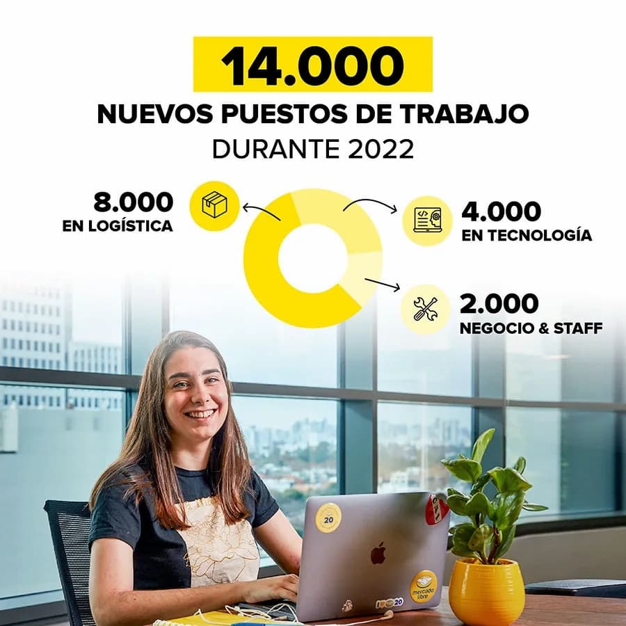 Mercado Libre anunció que generará más de 14.000 nuevos puestos de trabajo en Latinoamérica, lo que representa un crecimiento en su cantidad de colaboradores directos del 46% en 2022. Con este plan, la empresa busca ampliar su red logística en la región y reforzar las áreas de IT, que generan las soluciones tecnológicas para todo el ecosistema (Fuente MercadoLibre Argentina).