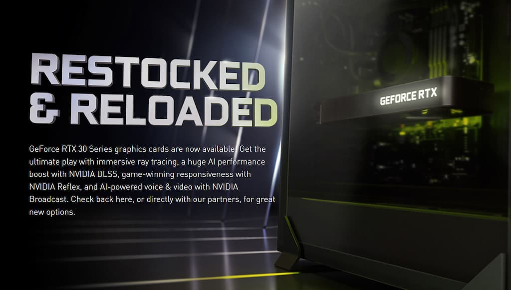 NVIDIA es consciente de la dificultad que han tenido los consumidores en los últimos meses para encontrar o adquirir una GeForce Serie 30 pero ahora, la búsqueda será más fácil y la compañía quiere ayudar a los jugadores a encontrar las tarjetas a los mejores precios. Para facilitar la búsqueda, NVIDIA pone a disposición de los consumidores una página específica para consultar distintas opciones para que los usuarios puedan elegir la más adecuada para ellos. En el siguiente enlace, clic.
