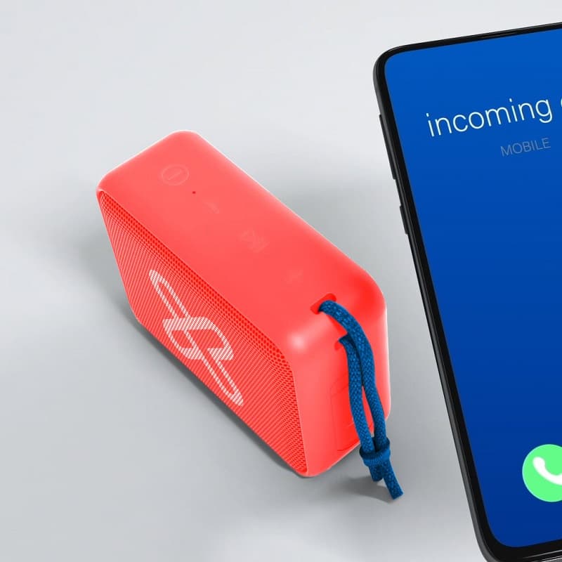 - Parlante portátil con tecnología inalámbrica Bluetooth V5.0 y de vinculación TWS, diseñado para reproducir audio en forma inalámbrica a través de dos parlantes iguales simultáneamente, a una distancia de hasta 30 metros.