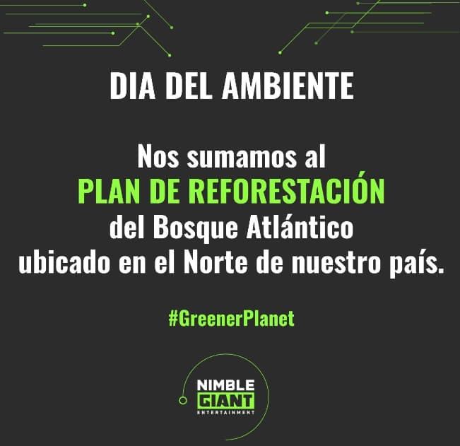Nimble Giant Entertainment, uno de los más importantes desarrolladores de videojuegos con más de 30 títulos lanzados y 20 años de trayectoria, anuncia su alianza con la Fundación Vida Silvestre Argentina para plantar 160 nuevos árboles de especies nativas al Bosque Atlántico, ubicado en la provincia de Misiones, en el norte de nuestro país. Además, como es un proyecto continuo, sumarán un árbol nativo por cada persona que se integre a la compañía a partir de este mes (Fuente Nimble Giant Entertainment).
