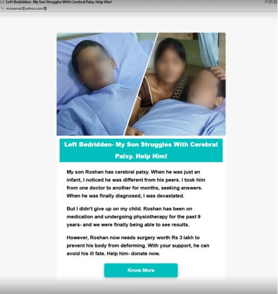 Los vídeos también utilizan afirmaciones hiperbólicas, como el hecho de que el cáncer de la niña se ha extendido por todo su cuerpo. Piden donaciones para tratar dicho cáncer, aunque si el cáncer ya se ha extendido es probable que sea demasiado tarde para la intervención médica. Falta concreción, lo que es una señal de alarma común en las estafas online.