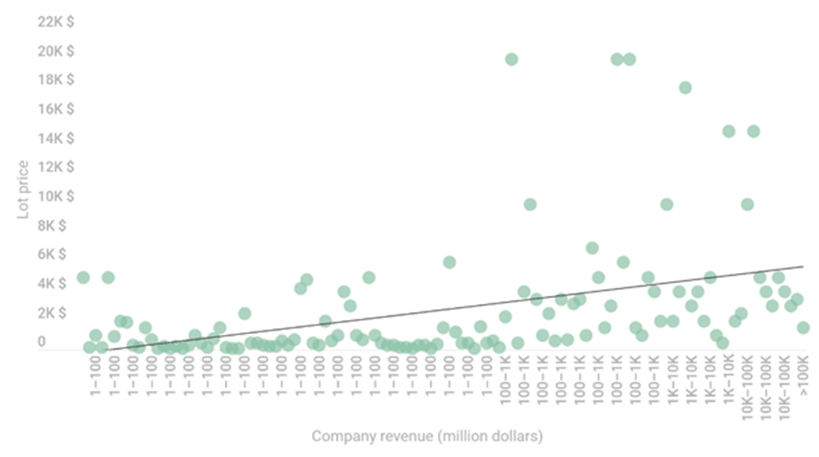 Los precios del acceso inicial varían mucho, desde un par de cientos de dólares hasta cientos de miles. Como era de esperarse, la clave de los altos precios de las ofertas analizadas son los ingresos de la empresa víctima potencial: el precio crece junto con los ingresos. Los precios también pueden diferir según la industria y la región operativa de la empresa.