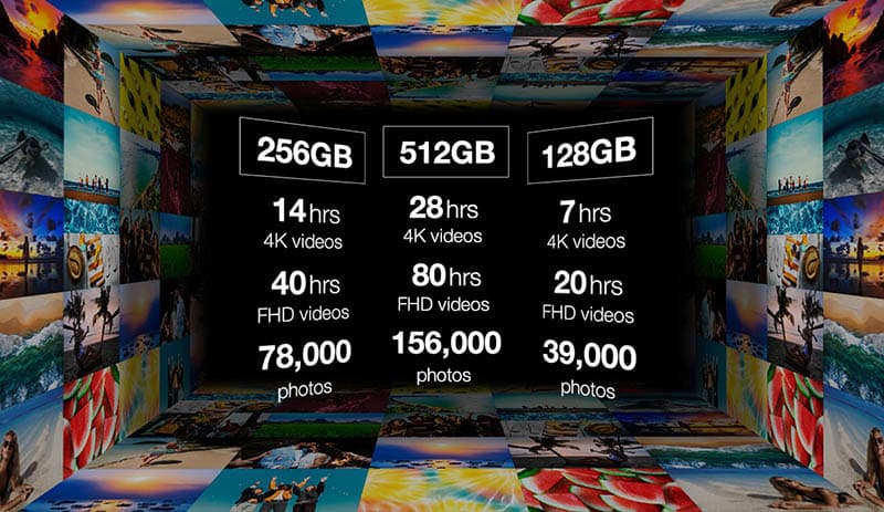 La Unidad Flash USB ELITE UE800 estará disponible en capacidades de 128GB, 256GB, y 512GB, permitiéndote almacenar hasta 28 horas de videos en resolución 4K, 80 horas de video en resolución Full HD, o hasta 156.000 fotos, para luego transferirlos a máxima velocidad a todos tus dispositivos.