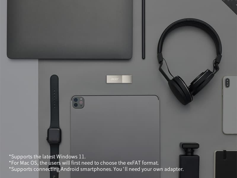 La unidad flash Acer UF200 de BIWIN se destaca por su recubrimiento metálico, diseño elegante y una forma curva en un extremo, que hace que sea muy fácil de insertar y retirar de un puerto USB. En tanto, su tamaño compacto y peso de solo 8,2 gramos hacen que sea extremadamente portable.