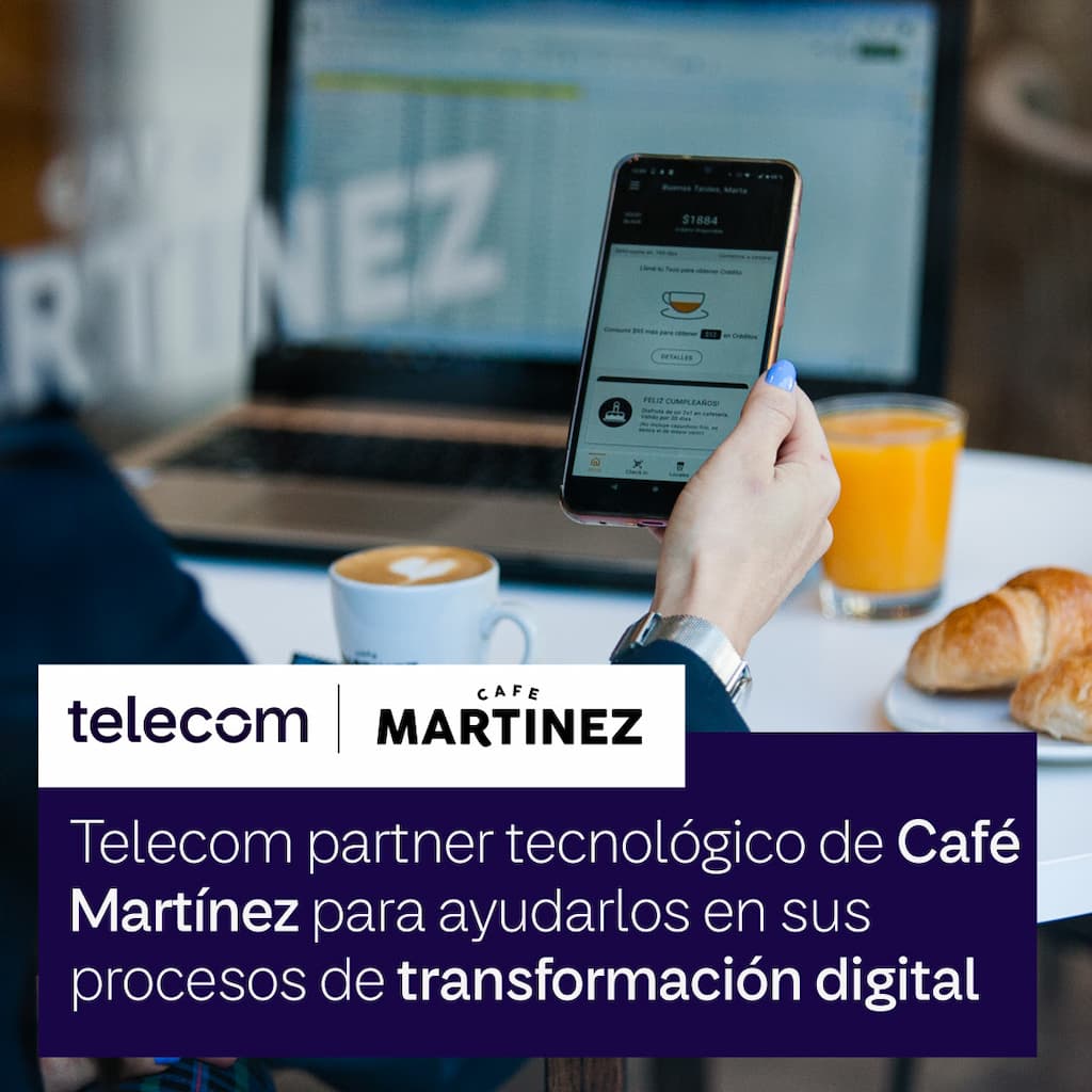 Telecom, ha sido elegida por Café Martinez, la cadena argentina de café del país fundada en 1933, como partner tecnológico para ayudarlos en su proceso de transformación digital (Fuente Telecom Argentina).