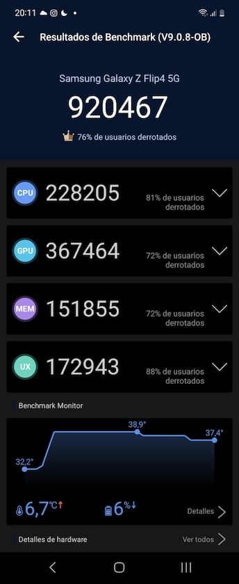 Benchmark del equipo y la autonomía (4.30 horas de pantalla):
