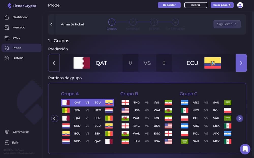 Hasta el 19 de noviembre próximo (un día antes de que comience el Mundial de Fútbol 2022), todos los usuarios que estén registrados en la plataforma de Tienda Crypto obtendrán un ticket para pronosticar los 64 partidos de la competencia y participar del Prode Tienda Crypto por importantes premios en DAI.
