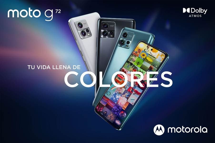 Motorola lanza en México el nuevo moto g72, un potente dispositivo que ofrece fotos llenas de detalles increíbles gracias al sensor de ultra alta resolución de 108 MP. El nuevo miembro de la querida familia moto g también combina dos altavoces estéreo grandes con tecnología Dolby Atmos®, un potente procesador y respaldado por una asombrosa batería con una carga increíblemente rápida (Fuente Motorola México).