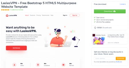 Plantilla para sitio web gratuita que fue utilizada para crear el sitio web que distribuye la falsa app de VPN.