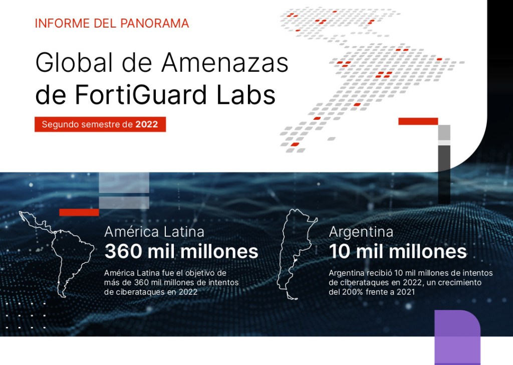 Fortinet®, impulsa la convergencia de las redes y la seguridad, anunció hoy el último informe semestral del panorama global de amenazas de FortiGuard Labs. Argentina recibió 10.000 millones de intentos de ciberataques en 2022, un crecimiento del 200% frente a 2021, según datos de FortiGuard Labs, el laboratorio de análisis e inteligencia de amenazas de Fortinet (Fuente Fortinet Argentina).