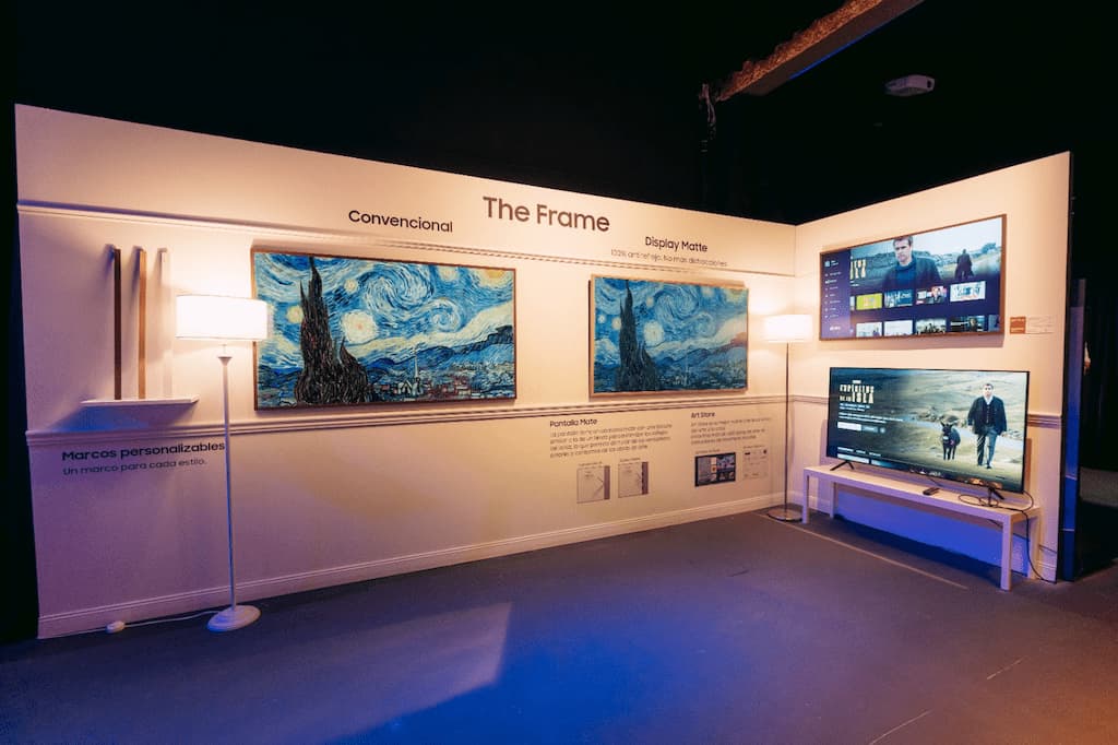 El nuevo The Frame serie B ofrece un arte más realista con una nueva experiencia de pantalla mate. Este Matte Display difunde la luz en varios ángulos y direcciones gracias a una superficie con relieve para evitar que la calidad de imagen disminuya debido a la luz del día o al reflejo de la iluminación artificial por la noche, ofreciendo la experiencia de visualización de arte más envolvente, con colores y texturas realistas, fuera de un museo. Además, incorpora el Procesador Quantum 4K, para un mejor rendimiento; tecnología Quantum DOT que asegura el 100% de volumen de color; sonido superior con la tecnología Dolby Atmos que ofrece una experiencia de audio inmersiva, además de sensores de brillo y movimiento que ayudan a un consumo eficiente de energía. Cuando The Frame se apaga, Art Mode está activado. Incluso cuando está apagada, se puede apreciar las obras de arte y fotos propias en el TV. Permite que los usuarios conviertan cualquier habitación en una galería de arte, ya que pueden seleccionar y mostrar sus obras de arte o fotografías digitales favoritas.