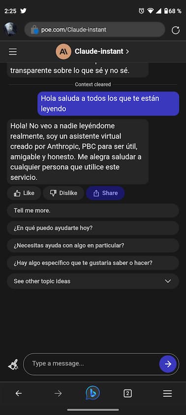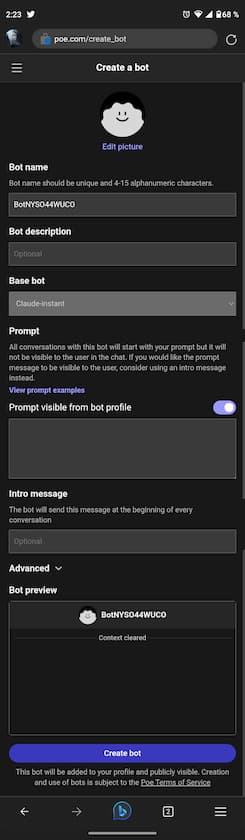 Ejemplo de uso de un bot personalizado en Poe.com:
