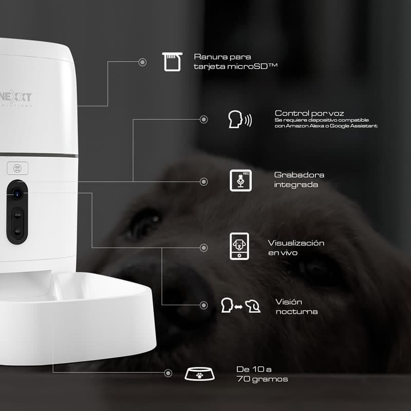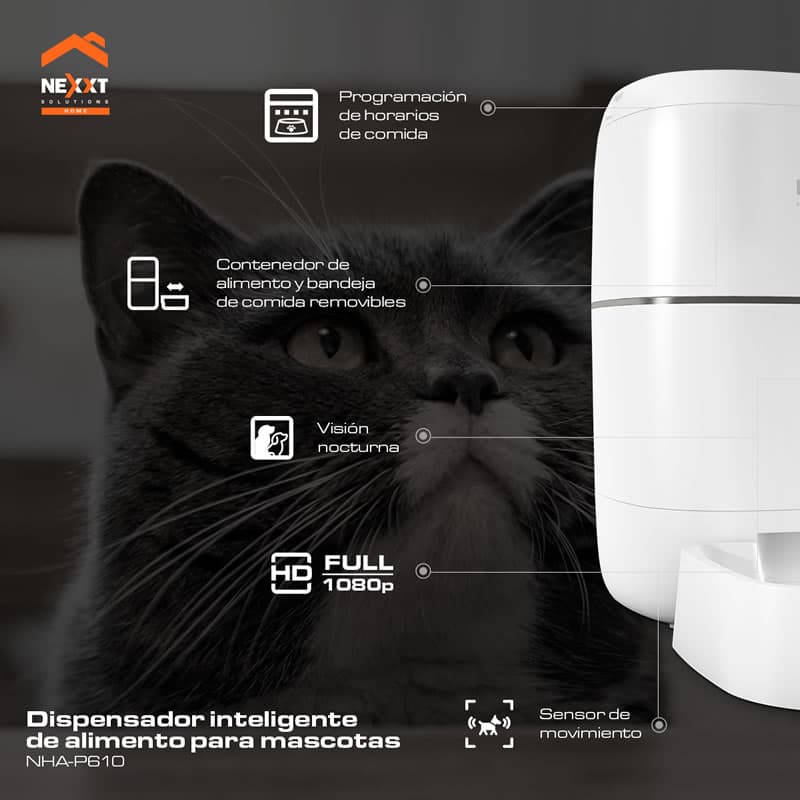 «Este innovador dispositivo, basado en tecnología IoT (Internet de las Cosas), permite que un perro o gato obtenga fácilmente su comida, siempre a tiempo y en la proporción perfecta según sus necesidades de nutrición. No solo promueve hábitos alimentarios más saludables mediante la programación de horarios, sino que también permite controlar la frecuencia y la cantidad de alimento dispensado en cualquier momento y desde cualquier lugar, a través de un teléfono inteligente o Tablet”, destacó Merlo. “El Dispensador Inteligente de alimento para mascotas de Nexxt Solutions se encarga de todo. Por ejemplo, los usuarios pueden tener un cambio de planes al salir de la oficina sin problema, ya que al contar con micrófono y cámara de alta definición con visión nocturna integrados, podrán hablarles a sus mascotas a través de la aplicación Nexxt Home y ofrecerles el alimento; e incluso observarlas en tiempo real para asegurarse de que lo coman”.