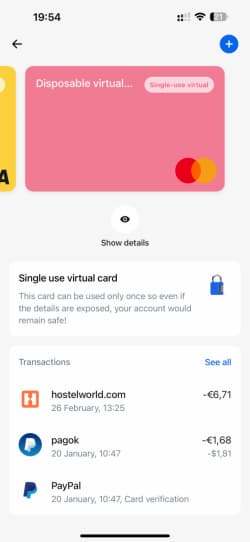 Muchos bancos tradicionales, u online, y billeteras virtuales, que usan aplicaciones móviles, ofrecen tarjetas virtuales como opcionales a la tarjeta física. En muchos de estos bancos también se ofrecen tarjetas de un solo uso que se conectan a una tarjeta real. Una vez que se compra con esa tarjeta, el sistema del banco detecta el movimiento y destruye los detalles de esa tarjeta, generando una nueva para la próxima compra. Como esas tarjetas tienen datos aleatorios, los hackers no pueden conseguir la información real. Además, en caso de reembolsos, los vendedores pueden devolver cualquier importe con la misma tarjeta de un solo uso a la cuenta original.