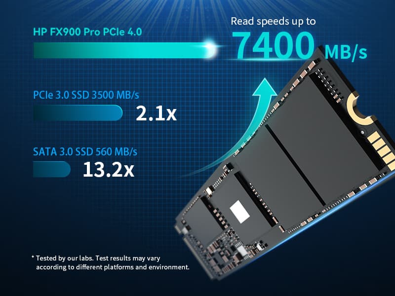 El FX900 Pro utiliza un controlador PCI Express Gen4x4 de 8 canales y el avanzado protocolo NVMe 1.4. Esto le permite ofrecer un rendimiento que no es posible en anteriores generaciones de unidades SSD. A la vanguardia en cuanto desempeño, es capaz de alcanzar velocidades de lectura de 7400 MB/s y de escritura de 6700 MB/s.