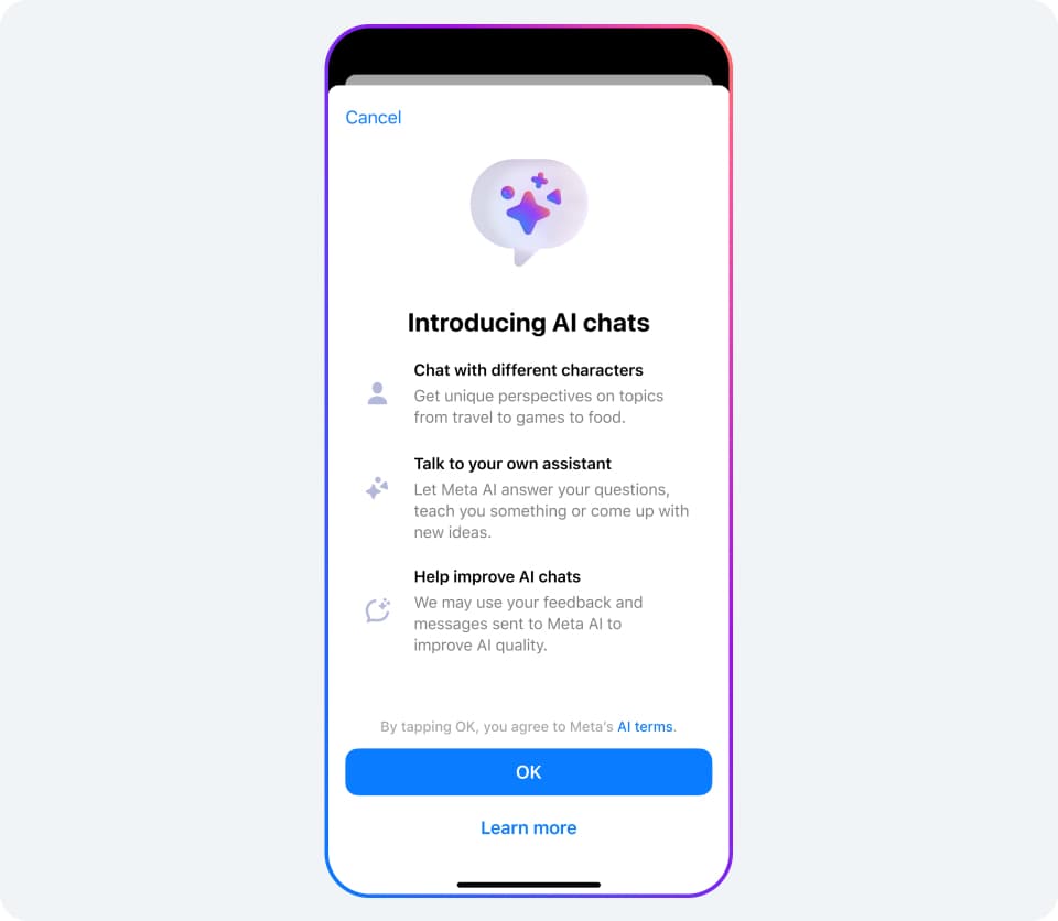 Usamos la información que las personas comparten cuando interactúan con nuestras funciones de IA generativa, como Meta AI o empresas que usan IA generativa, para mejorar nuestros productos y para otros fines. Podes leer más sobre los datos que recopilamos y cómo usamos tu información en nuestra nueva Guía de Privacidad, los Términos de servicio de IA de Meta y nuestra Política de Privacidad.
