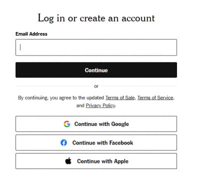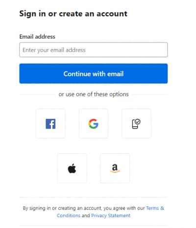 Ejemplo de opciones SSO para iniciar sesión o crear una cuenta.