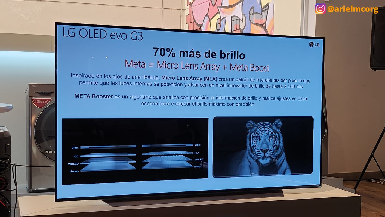 A su vez, el G3 cuenta con el panel más brillante en un televisor OLED en Argentina, gracias a su matriz de microlentes (MLA), conocida como META. Esta tecnología permite que toda la luz emitida por los píxeles se aproveche al 100%, logrando una entrega de iluminación de hasta 2100 nits. Esto se traduce en un 70% más de brillo en la imagen, proporcionando una experiencia visual tan realista que parece que formamos parte de la escena.