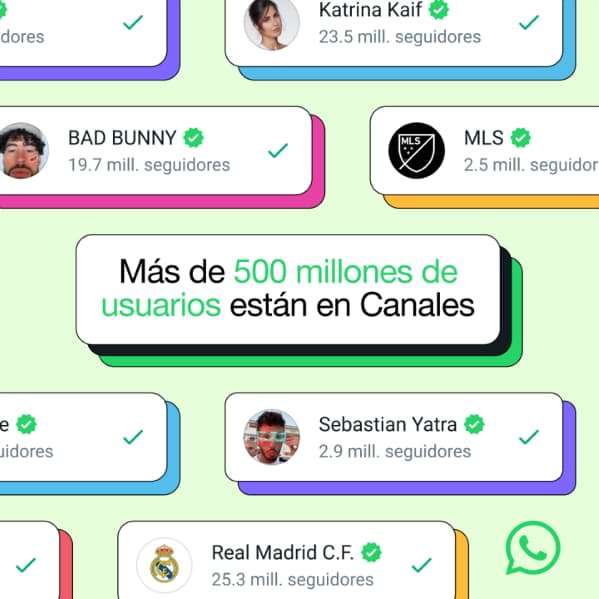 Mark Zuckerberg anuncio, en Facebook y canal de WhatsApp, que los Canales de WhatsApp han superado los 500 millones de usuarios activos mensuales. Canales es una forma privada de recibir actualizaciones de las personas, organizaciones y equipos que seguís en WhatsApp. Los Canales están separados de tus chats, y las personas que elijas seguir no son visibles para otros seguidores (Fuente Meta Argentina).