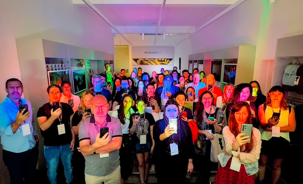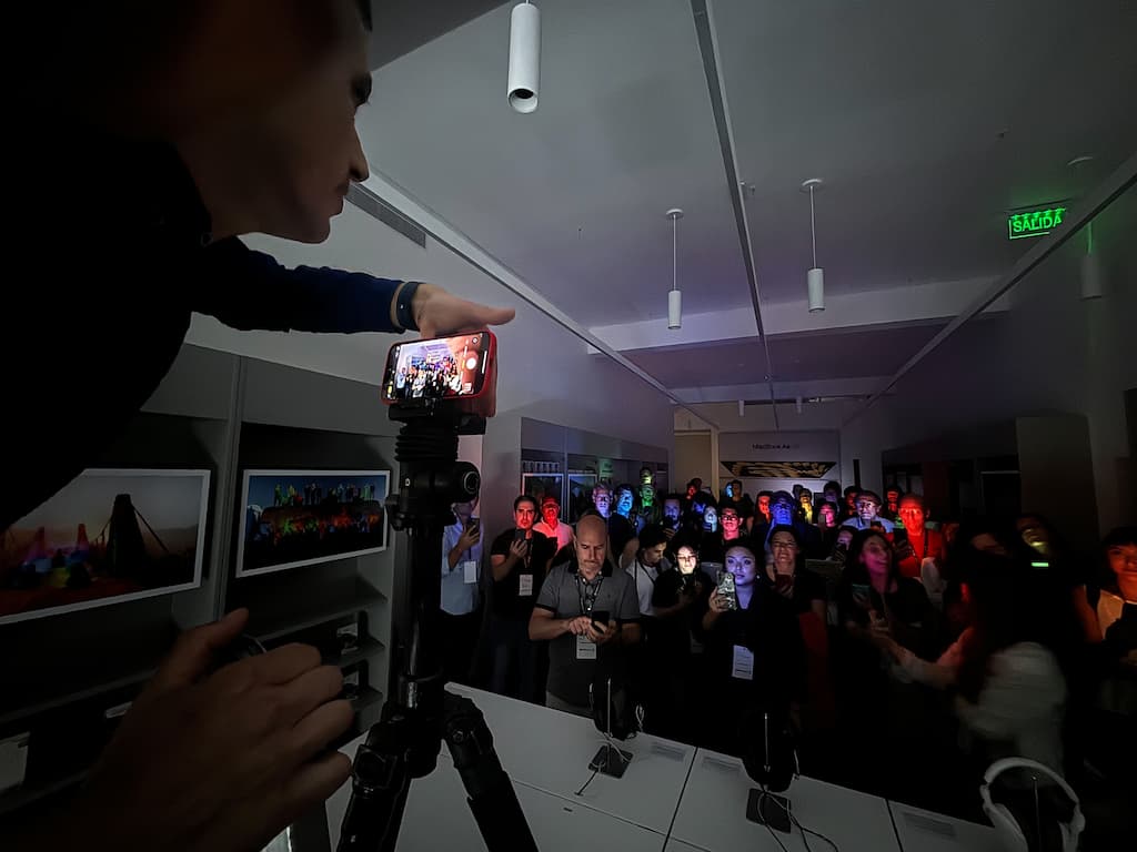 Durante el encuentro, los invitados recorrieron en imágenes la trayectoria del artista, un referente de la fotografía nocturna con proyectos emblemáticos como Natur-e, Laberinto, La creciente, Otsuchi Future Memories, entre otros. A su vez, los asistentes fueron parte de una intervención en donde cada persona iluminó su rostro con un color único, para ser retratados en una fotografía conjunta creada por el artista.