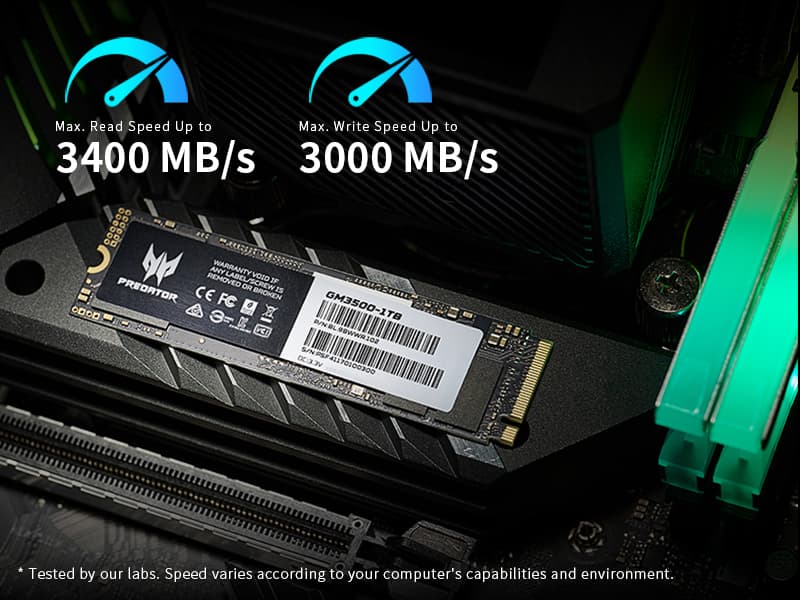 El SSD Predator GM3500 viene en capacidades de 512 GB, 1 TB y 2 TB. Puede utilizarse tanto en PCs de escritorio con conector M.2 PCIe 3.0 como en notebooks, dado que su diseño lo hace apto incluso para instalarse en portátiles ultra delgadas. Asimismo, integra un disipador de calor con lámina de cobre que asegura un funcionamiento óptimo en sesiones de juego prolongadas.