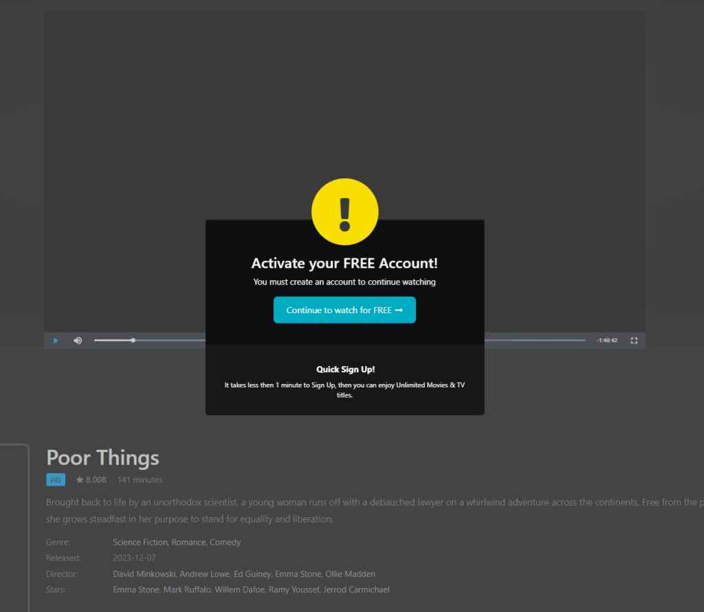 - Desconfía de las ofertas demasiado buenas. Si un sitio te ofrece acceso gratuito a películas que están actualmente en cines o acaban de ser lanzadas en otras plataformas, probablemente sea una estafa. Cuando el acceso «gratuito» a una cinta te solicita ingresar detalles bancarios, se debe tener cautela.