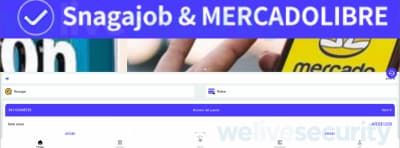 Una vez que se hace el registro, aparece una página cuyos botones en general no funcionan y solo funciona el de recarga de saldo. Dentro de la página aparecen imágenes de logos de Mercadolibre, Amazon, etc., en su mayoría imágenes pixeladas y de baja calidad. También se observan errores ortográficos y de tipeo, como en el banner principal y el botón para ver los empleos donde se lee “see iobs” en lugar de «see jobs».