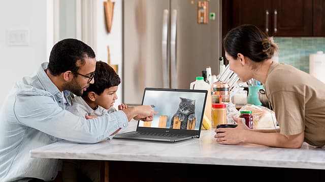 La pantalla Full HD de 14 pulgadas del Chromebook cuenta con tecnología IPS, brillo de 300 nits y amplios ángulos de visión, lo que garantiza que todo lo que contiene, desde videos y fotografías hasta imágenes y texto, sea vibrante, nítido y claro. La pantalla es la paleta perfecta para utilizar herramientas de edición de fotografías y diseño gráfico basadas en IA, como Magic Eraser en la aplicación integrada Google Photos, así como Adobe Photoshop y Adobe Express con tecnología de IA generativa de Adobe Firefly. Además, la pantalla del Chromebook Plus 514 está disponible en modelos táctiles y no táctiles, con revestimiento antirreflejo, para que pueda disfrutarse en condiciones de mucha luz.