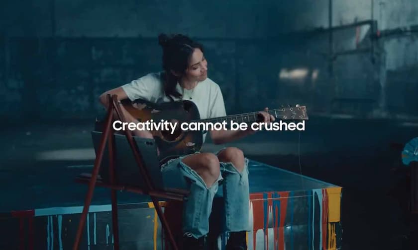 Y con ello Samsung, difundió este miércoles en su cuenta de X un nuevo spot con el lema «Nunca aplastaríamos la creatividad». El vídeo inicia donde lo dejó el de Apple. Una mujer camina sobre un montón de artilugios destrozados, entre ellos, una guitarra rota que toma del suelo. La chica se sienta y empieza a tocar el desaliñado instrumento, teniendo en frente una tablet Galaxy Tab S9 Series sobre un atril mostrando una partitura.