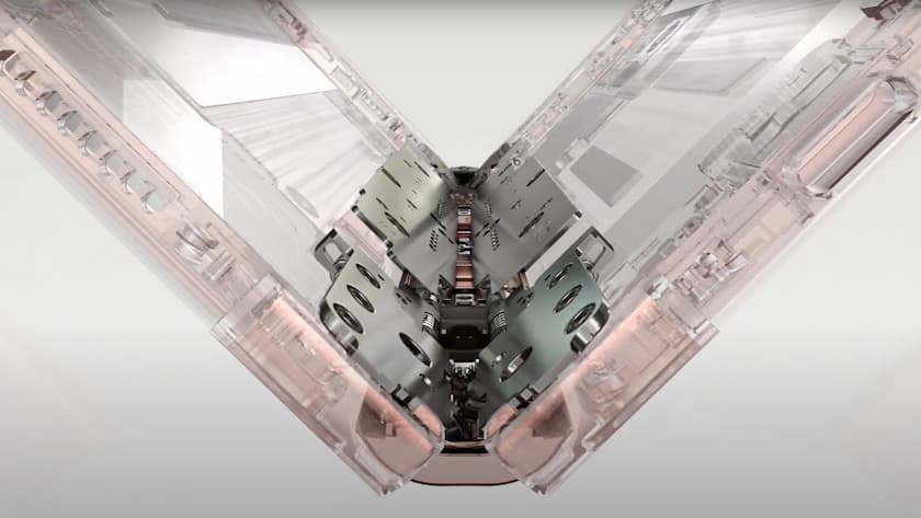 Dado que la bisagra se doblaba constantemente cuando se abría o cerraba el dispositivo, inevitablemente quedaba un espacio entre la parte frontal del dispositivo y la estructura de la bisagra. Para minimizar eficazmente esta brecha, Samsung necesitaba desarrollar un componente que fuera duradero y elástico sin agregar volumen adicional. Inspirándose en el cepillo de una aspiradora, Samsung utilizó fibras ópticas delicadamente cortadas para abordar este problema: Tecnología Sweeper. La tecnología Sweeper protege la pantalla del teléfono del polvo y de los residuos externos que podían entrar a través del espacio, brindando una experiencia de dispositivo plegable más ágil.