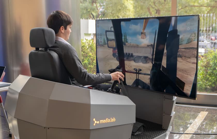Luego de tres años de investigación y desarrollo, EXO Soluciones Tecnológicas y Media.Lab presentaron el primer simulador de maquinaria pesada fabricado íntegramente en la Argentina. Este equipamiento permite capacitar en el uso de una excavadora profesional con seguridad y reduciendo costos en las empresas (Fuente EXO Argentina).
