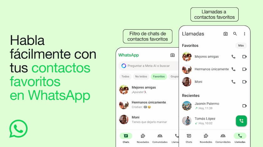 En el día de ayer, Meta, anuncio que se puede elegir los «favoritos» en WhatsApp, para que se pueda encontrar rápidamente a las personas y grupos que más nos importan en la parte superior de tu pestaña de llamadas y como filtro para tus chats (Fuente Meta Argentina).