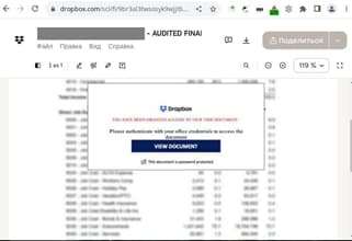 Kaspersky ha descubierto un fraude de phishing en fases múltiples dirigido a empleados que trabajan con documentación financiera. El engaño comienza cuando las víctimas reciben un correo electrónico de la dirección legítima de una empresa de auditoría. Esta interacción inicial pretende hacer que el destinatario sospeche menos: como un paso previo para facilitar la actividad fraudulenta principal. A continuación, llega una notificación del servicio Dropbox, que contiene enlaces maliciosos a archivos en los que los ciberdelincuentes han subido archivos de phishing diseñados para robar credenciales (Fuente Kaspersky Latam).