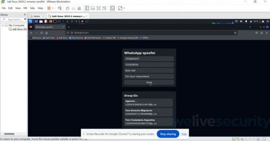 ESET comparte un ejemplo simulado de intervención de una cuenta de WhatsApp mediante el QRLjacking, una técnica en la que el atacante genera un QR de inicio de sesión falso con el que tomará el control de una cuenta. De esta forma, podrá enviar mensajes en nombre del titular y leer sus mensajes sin que el titular pueda advertirlo.