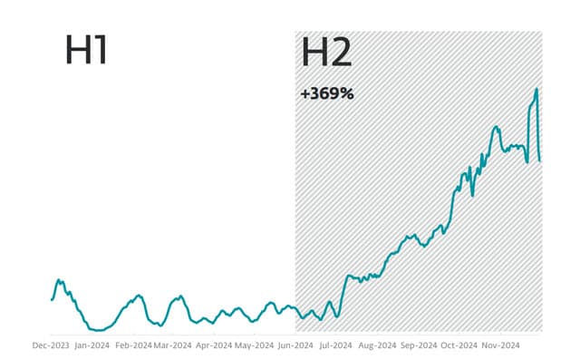 Lumma Stealer: Logró posicionarse por primera vez en el top 10 de detecciones de ESET en el segundo semestre de 2024. En total, en ese periodo mostró un crecimiento récord de 395% más de 50.000 detecciones registradas. El mayor número de detecciones se focalizaron en Perú, Polonia, España, México y Eslovaquia.