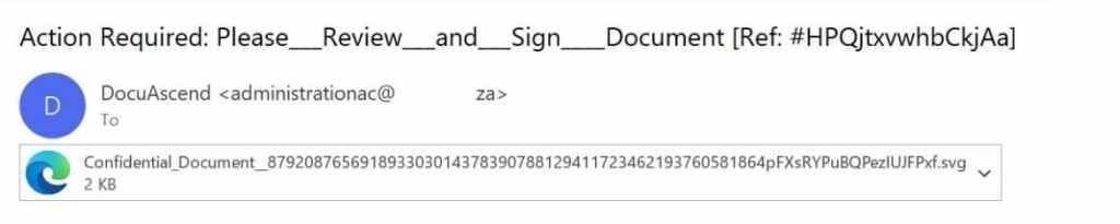 En otro caso, los atacantes simularon una notificación de un servicio de firma electrónica, presentando el archivo SVG como un documento pendiente de revisión y firma.