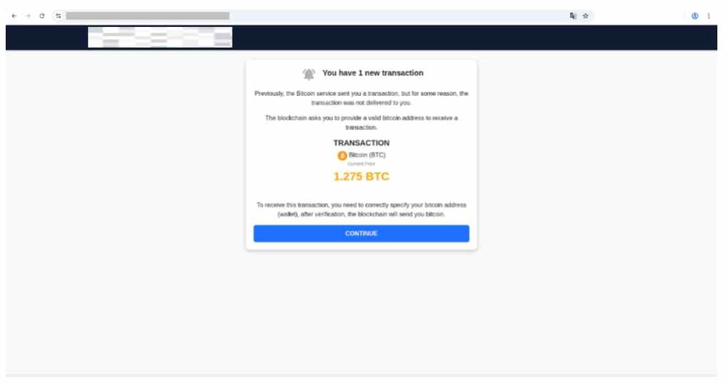 Después de hacer clic en el enlace del correo, el usuario es dirigido a un sitio web fraudulento que imita una plataforma de transacciones cripto.