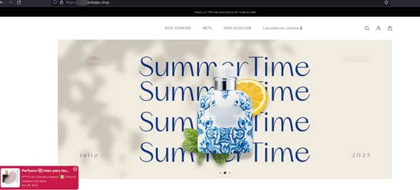 Al dar clic en “comprar”, el usuario es redirigido a sitios fraudulentos que imitan tiendas oficiales. Los delincuentes registran dominios casi idénticos a los originales, con variaciones mínimas como duplicar letras, sustituirlas por números o agregar guiones, para engañar al usuario y dirigirlo a una página falsa. Una vez dentro, la víctima encuentra una copia casi exacta del sitio real, con diseño, logotipos y secciones que simulan categorías de producto legítimas, todo cuidadosamente creado para robar información.
