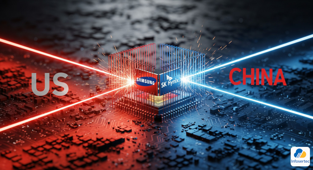 La guerra comercial entre Estados Unidos y China ha escalado, afectando directamente a los gigantes surcoreanos de semiconductores Samsung y SK Hynix. Según informes, la administración Trump ha rescindido las exenciones que les permitían a ambas compañías importar equipos de fabricación de chips estadounidenses a sus fábricas en China sin necesidad de licencias.